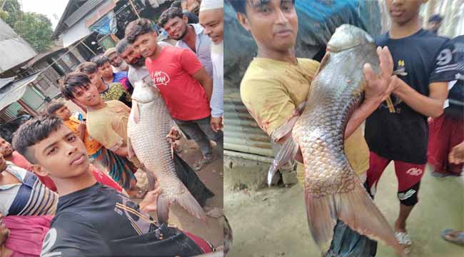কামারখালী গড়াই ও মধুমতি নদীতে খ্যাপলা জালে প্রায় ২১কেজি ওজনের রুই মাছ শিকার