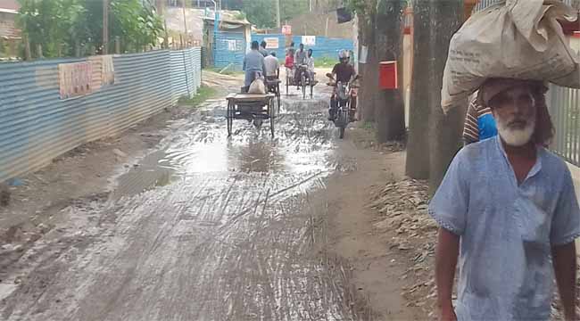 দেখার কেহ নাই, হালকা বৃষ্টিতেই সড়কটি কাদা-পানিতে একাকার, কামারখালী বাজারে ঢুকতে প্রধান সমস্যা